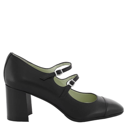 Carel Ladies Heels. SKU - 332460. Color - Nappa Noir/Vernis Noir. Carel Double Straps Leather Heel Pumps. These heel pumps feature calf leather with a patent finish at the toe, a double-strap design, a side buckle fastening, a 70mm block heel, with a branded leather insole and a leather sole. Calf Leather 100%. Made in Italy.