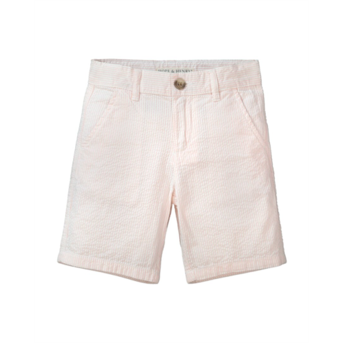 Introducing the 'Hope & Henry Seersucker Short' for boys, the perfect addition to your little one's Easter wardrobe. This stylish short features a pink and white stripe pattern, front and back pockets, a faux horn button with zipper closure, and an adjustable inner waistband for sizes 2T and up. Made from 100% organic cotton, this short is not only fashionable but comfortable for your child to wear. Easy to care for, simply machine wash and it's ready to wear again. Imported and designed by the trusted brand, HOPE & HENRY, this seersucker short is a must-have for any boy's spring and summer wardrobe.