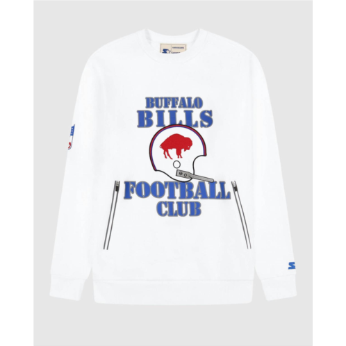 Embrace nostalgic style with the Men's Buffalo Bills Crew Neck Sweatshirt by Starter, crafted from comfortable fleece and featuring long sleeves. Proudly showcasing a bold graphic pattern, this white sweatshirt comes with a screen-printed team name, a large team logo helmet appliqu