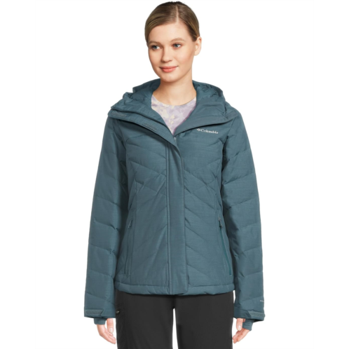 - The Columbia Lay D Down V Jacket is engineered for peak warmth without the bulk. Featuring 550 fill power, RDS-certified down insulation, this jacket wraps you in cozy heat. The signature Omni-Heat thermal reflective lining actively traps your body warmth, while Omni-Shield advanced repellency shrugs off moisture and stains. Designed with a secure zippered front closure, zippered hand pockets, and a drawcord adjustable hood, it provides full coverage and effortless style.