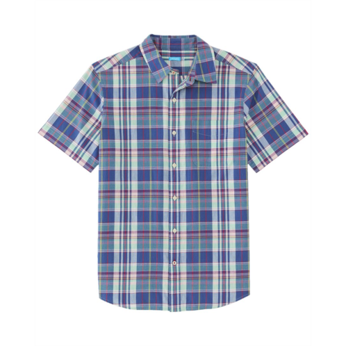 Introducing the J.McLaughlin Plaid Montauk Woven Shirt, a timeless addition to any man's wardrobe. This classic dress shirt features a traditional plaid pattern in white, blue, and red, perfect for adding a pop of color to your outfit. Made from 100% cotton, this shirt is both comfortable and easy to care for with a machine washable design. The button-down style adds a touch of sophistication, while the approximately 29.5 inch length from shoulder to hem offers a flattering fit. Imported from the renowned brand J.McLaughlin, known for their high-quality traditional sportswear featuring stand-out fabrics and prints. Elevate your style with this must-have shirt for any occasion.