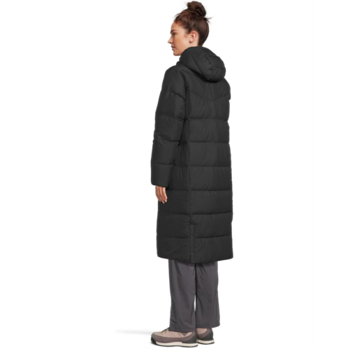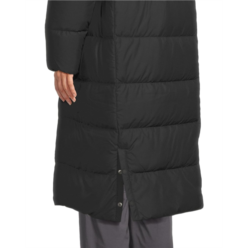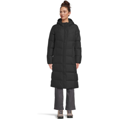- Step out in comfort and style with the extra-long Popham Puffer Coat, featuring premium DownTek down insulation for light, lofty winter warmth -- and below-knee length for extra coverage. This coat offer a two-way front zipper with snap storm flap, which can be zipped from bottom for comfort when driving or sitting.