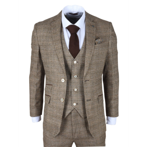 Premium Fabric Composition - Crafted from high-quality materials, this suit offers durability and comfort Stylish Design - The brown checked pattern adds a sophisticated touch to the classic suit silhouette, making it suitable for various occasions, from business meetings to formal events Tailored Fit - Designed with a tailored fit, this suit enhances the wearer’s physique, providing a flattering silhouette that promotes confidence and style Versatile Ensemble - This 3-piece suit includes a jacket, trousers, and a matching vest, allowing for multiple styling options. Each component can be worn together for a cohesive look or separately to elevate casual outfits Attention to Detail - Features such as notch lapels, functional pockets, and intricate stitching highlight the suit's craftsmanship