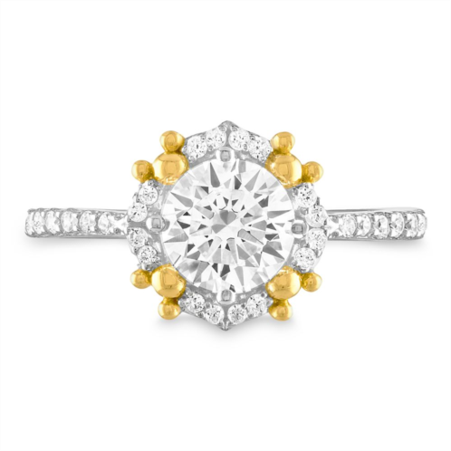 A dazzling cubic zirconia stone is surrounded by Mickey icons featuring an 18K yellow gold finish on this solitaire ring by Rebecca Hook. The sterling silver band and setting are accented with clear cubic zirconia for added sparkle.