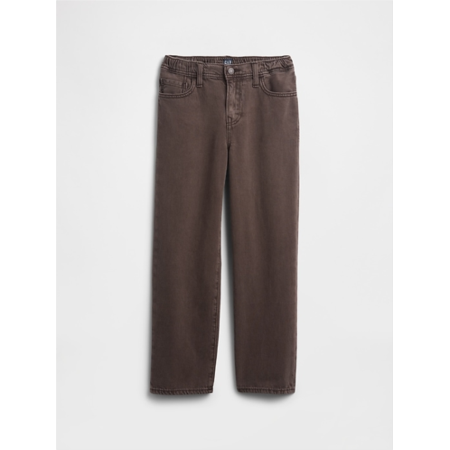 - Button closure at elasticized hybrid waist (sizes 4-8 have hook & bar closure beneath faux snap for easy on and off), zip fly.