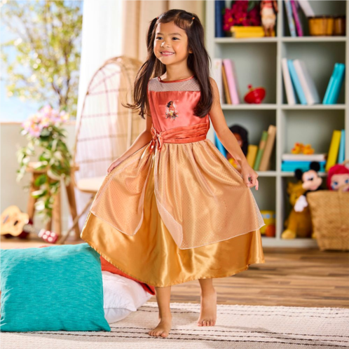 Dreams come to life when they wear this Moana costume nightgown. Inspired by the brave wayfinder in Disney's popular film series, this pretty satin nightgown features colorful art on the front, a sparkly mesh overskirt and yoke, and a shiny sash waistband and bow. Sweet dreams of endless adventures are on the horizon the moment they put it on.