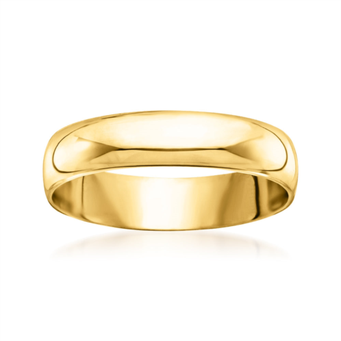 Developing fresh ways to wear timeless looks, Ross-Simons masters the classics. Refined yet substantial at 5mm in width, this elegant wedding ring is one he'll cherish for a lifetime. The golden ring gleams in unadorned masculinity, as unlined as the happy years that lie ahead. Polished 14kt yellow gold wedding ring. Each Ross-Simons item arrives in a fine jewelry presentation box. Shop Ross-Simons jewelry risk-free as all items include a 30-day, 100% money-back guarantee.