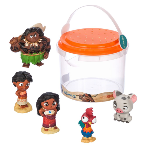 Imagine the sky meets the sea at bathtime with this five-figure tub toy set. Housed in a clear pail, with a colorful strainer lid, Moana, Maui, Pua, Heihei, and Simea are ready for a voyage of adventure.