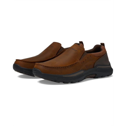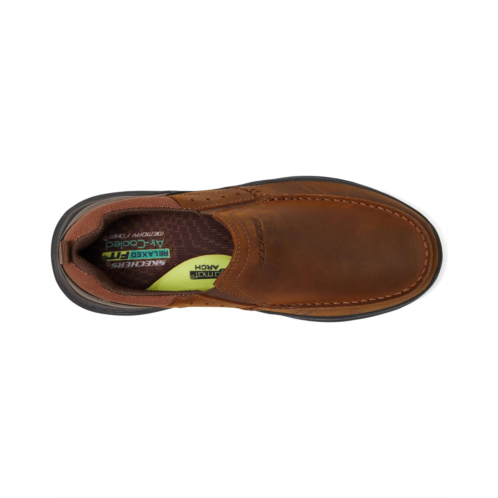 The SKECHERS Relaxed Fit Expended - Seveno loafer combines casual comfort and sleek style with an oiled leather upper, matte finish, durable overlays, and mockorea aesthetic.