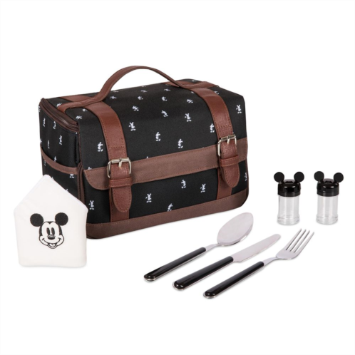 This Mickey Mouse lunch tote has all the ingredients to make meal times magical. The tasteful design features an allover Mickey silhouette print, faux leather trim, and a front pocket that unzips to reveal a deluxe service for one.
