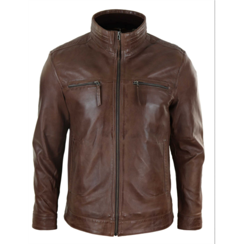 * Mens Genuine Leather Biker Style Jacket* Design Based On A Hybrid Classic Biker Jacket With A Modern Twist, Available in 2 Stunning Colours* Smart Casual Jacket Made From Premium Soft Leather, Perfect For Any Occasion!* Tailored Fit (inbetween slim & regular fit), Side Slip Pockets, Chest Zip Pockets & Internal Pockets For Secure StorageMaterial - Outer - 100% Leather; Lining - 100% Polyester