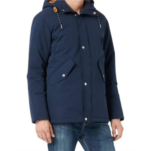 Stay warm and stylish. Marine Blue parka features a padded design, long sleeves, and a practical snap closure. Complemented by a drawstring hood and side pockets for added functionality. Made of 100% polyester. Regular fit ensures comfort and ease. Care for this durable piece by washing at a maximum temperature of 40°C; avoid bleach, tumble drying, and dry cleaning, and iron at a maximum of 110°C if needed.