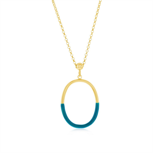 [US] Simona sterling silver petrolio enamel oval necklace - gold plated