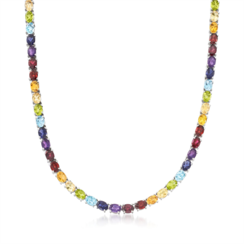 Established in 1952, Ross-Simons presents contemporary styles with a timeless appeal. An RS exclusive. This vibrant gemstone necklace is heads above the rest! Brimming with a beautiful rainbow-bright arrangement of 46.25 ct. t.w. gems, including rhodolite garnet, amethyst, iolite, sky blue topaz, peridot, citrine and garnet. Set in polished sterling silver. Figure 8 safety. Box clasp, multi-gemstone tennis necklace. Each Ross-Simons item arrives in a fine jewelry presentation box. Shop Ross-Simons jewelry risk-free as all items include a 30-day, 100% money-back guarantee.