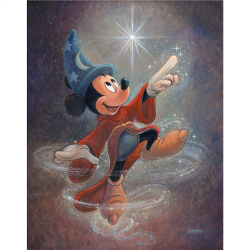 Mickey is featured in his famous role as the Sorcerer's Apprentice in this spellbinding work by artist Bret Iwan. ''Swept Up in the Magic'' evocatively captures a memorable moment from Walt Disney's groundbreakingFantasia. Gallery wrapped on canvas, this limited edition print is signed by the artist and hand-embellished with acrylic painted accents.