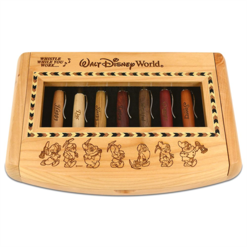 - Set includes seven pens and elegant wood display case with inlaid pattern and etched artwork of Dopey, Grumpy, Happy, Sneezy, Sleepy, Bashful and Doc, plus ''Whistle While You Work'' and ''Walt Disney World''