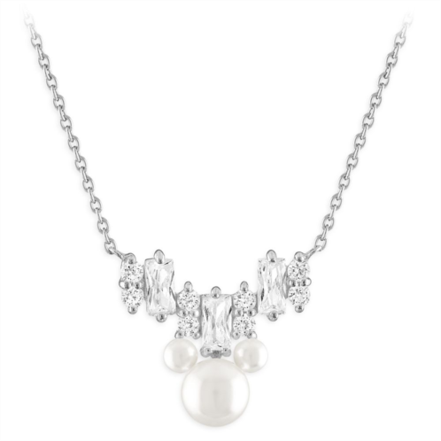 With a sparkle and shine to match their smile, this Mickey Mouse pearl necklace by Rebecca Hook is a beautiful gift for a special someone. The unmistakable Mickey icon is fashioned by gorgeous simulated pearls and surrounded by hand-cut baguette and round cubic zirconia to make an impression as unforgettable as the person who wears it.