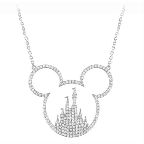 The unmistakable silhouette of the Fantasyland Castle nestles within the outline of a Mickey Mouse icon on this necklace by Rebecca Hook. Fashioned in sterling silver, the whole pendant sparkles with dazzling cubic zirconia and hangs from an adjustable chain.