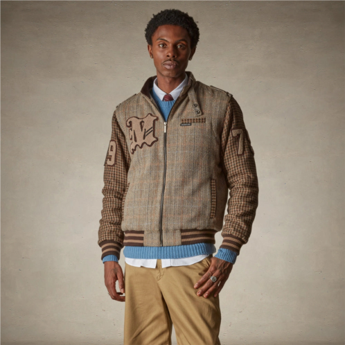 Men's Tweed varsity Jacket comes with a Signature Members chest pocket with with logo detail. Iconic Throat latch and shoulder epaulettes, Zip front & 2 waist pockets.