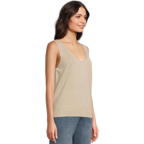 - Fine gauge yarn linen-blend tank featuring metallic threading details. Flattering deep V-neckline and ribbed hem. Featuring a V-back, sleeveless design and a regular fit.