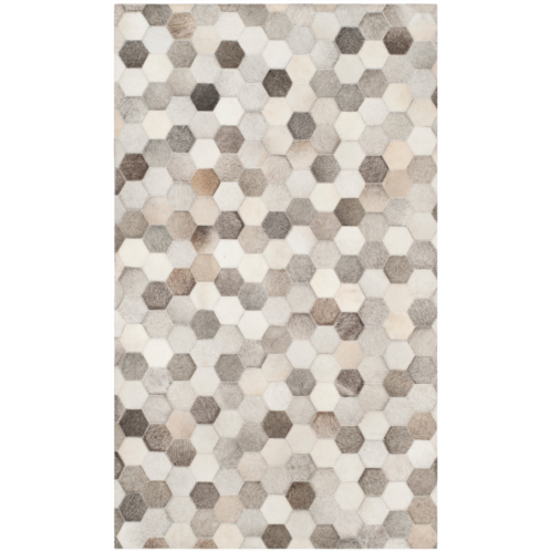 Fashion-forward and textural, Studio Leather rugs from SAFAVIEH are crafted with the finest cowhides and leather. Designs in the collection range from classic square patchwork rugs to innovative compositions featuring appliqued geometric cutouts. Studio Leather rugs are hand-stitched to create contemporary works of art in an array of natural cowhide tones and vivid primary colors. Rug has an approximate thickness of 0.25 inches.