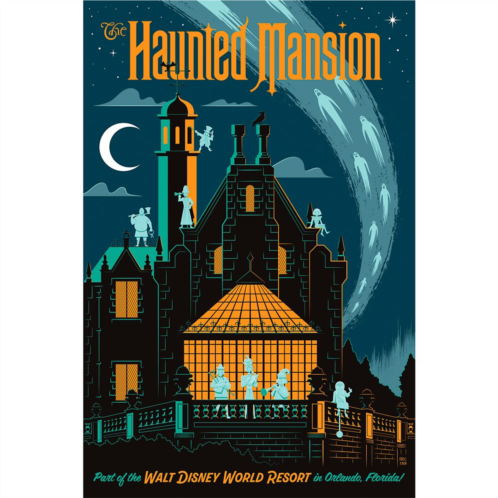 As night falls on Walt Disney World'sThe Haunted Mansion, its ghostly inhabitants are pictured taking in some fresh air after another busy day of thrilling visitors to the popular attraction. The Hitchhiking Ghosts and the Executioner are among the happy haunts featured in this limited edition work by Eric Tan that comes gallery wrapped and ready to haunt your home.