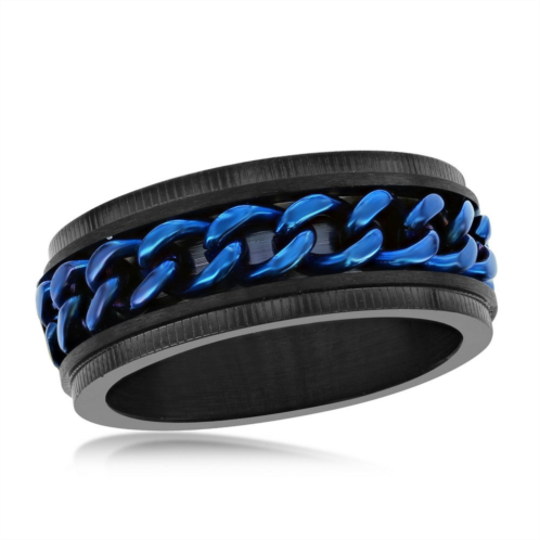 [US] Blackjack stainless steel black w/ blue cuban link ring