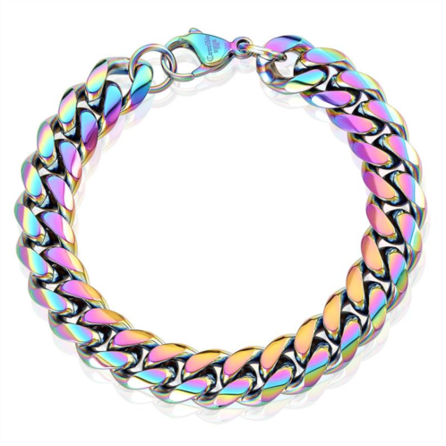 Crucible Men's 12mm Stainless Steel Curb Bracelet 8.5' in 5 Colors. Bracelet features a large lobster clasp.