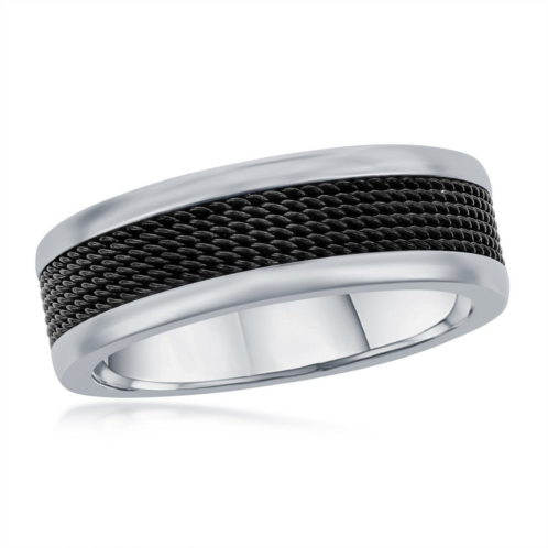 Stainless Steel Black Mesh Inlay Polished Band Ring