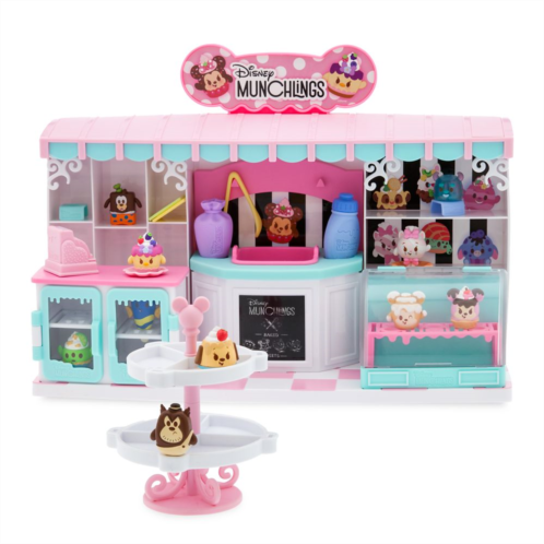 Welcome to the hottest new bakery in town! It's the Disney Munchlings Minnie Mouse's Bake Shop Play Set featuring 10 adorable Disney Munchlings mini figures including three Disney Store exclusives. Scented like chocolate, berry, cinnamon or another yummy aroma, each mini figure reimagines a Disney friend as a sweet treat. The 25-piece play set also includes display cases, cash register, plates and more. Fill the sink and bottles with cold water and dip or squirt the figures to ''decorate'' them with color-change effects. There's so much fun to be had at Minnie Mouse's Bake Shop it just proves that it's always best to enjoy dessert first!