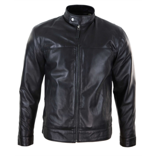 * Mens Genuine Black Leather Zipped Jacket Nehru Collar* Classic Black Biker Collarless Style With Top Stud Button* Casual Biker Jacket Made From Premium Soft Leather Perfect For Smart Casual & Casual Wear* Tailored Fit (inbetween slim & regular fit), Side Pockets & Internal Pockets For Secure StorageMaterial - Outer - 100% Leather; Lining - 100% Polyester More products from the category†walking dead negan jacket