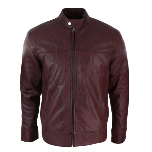 [US] TruClothing leather jacket nehru grandad collar biker