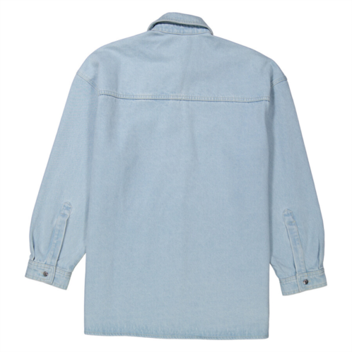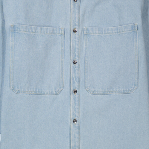 Nanushka Ladies Outerwear. Fashion category: Jeans & Denim. SKU: NU23PFSH00172. Color: Sun Bleach. Nanushka Beaux Denim Dress. The light blue 'Beaux' denim jacket features an oversize design with a collar, two slip pockets, long sleeves with buttons, and is fastened with buttons.