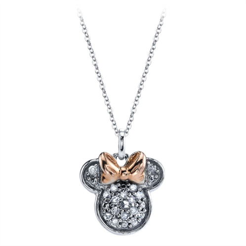 Show your love for Minnie Mouse with this sterling silver pendant necklace featuring a rose gold bow and dazzling diamonds.
