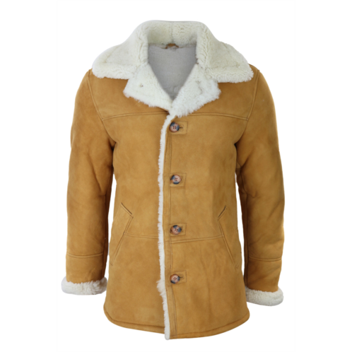 * Mens Vintage Camel Sherling Sheepskin 3/4 Coat Button Down * Finished In Premium Vintage Camel Suede Leather With Teddy Sherling Sheepskin Fully Lined * Button Down 3/4 With V Neck Front Opening * Classic Vintage Premium Sheepskin Jacket Perfect For Winter Material - 100% Leather