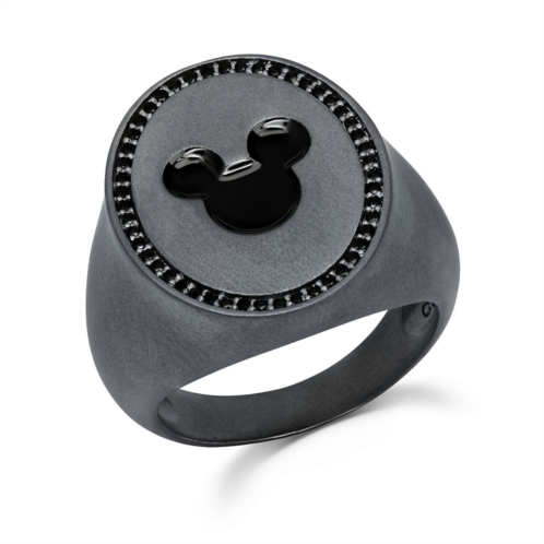 Mickey Mouse brings his iconic style to this distinctive signet ring.Fashioned in sterling silver and featuring black rhodium details and black cubic zirconia accents,it makes a handsome statement.