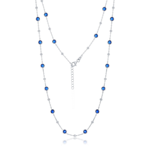 [US] Simona sterling silver bezel-set cz & bead station necklace (white green blue or red)