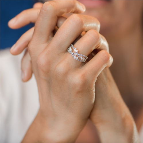 Bands of sterling silver encrusted with colorful cubic zirconia and accented with Mickey icons crisscross to create this elegant ring. Created by designer Rebecca Hook, this dazzling piece will bring a sparkle to your day.