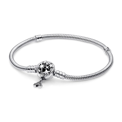 Make your favorite Disney Parks memories last with this snake chain bracelet from Pandora. Crafted in sterling silver, the bracelet can be styled with 16-18 of your favorite charmsand features an openwork clasp with different star shapes. For added movement, the clasp has a dangling Fantasyland Castle with extra sparkle. It's the perfect piece to take home to keep treasured memories by your side.