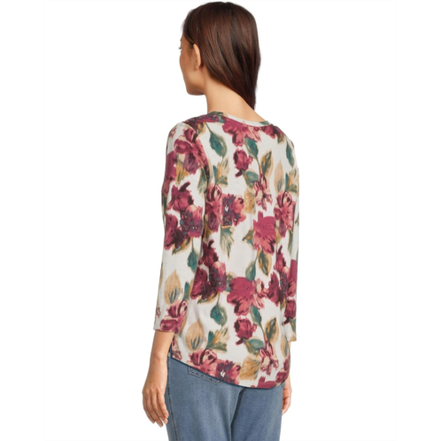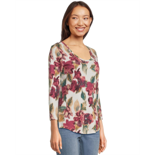 - Printed tee featuring a chic scoop-neck silhouette and 3/4 sleeves. Slight high/low hemline. Crafted from super-soft 100% cotton.