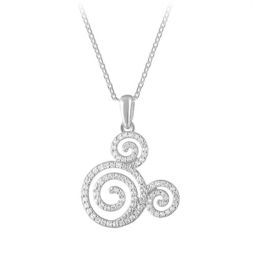 Sparkling clear cubic zirconia form a swirling Mickey icon design on this elegant necklace by Rebecca Hook. Fashioned in sterling silver with a shiny finish, it will add a touch of charm and character to any occasion.