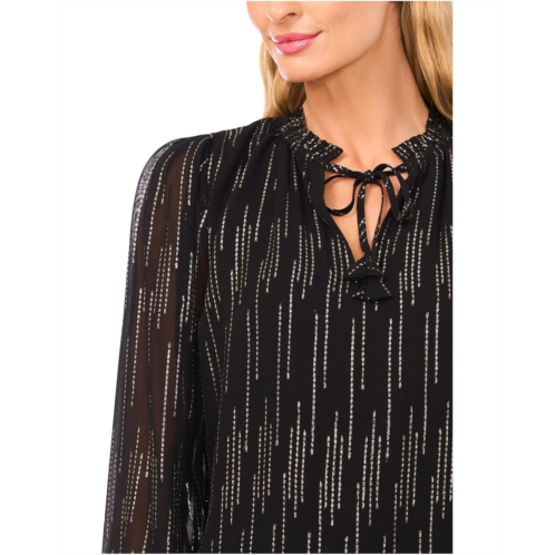 [US] Womens CeCe Smocked Cuff Ruffle Tie Neck Top