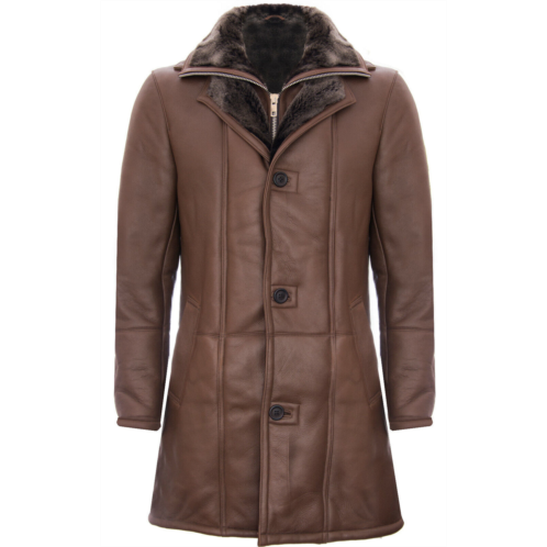 The ideal choice for winter, this coat is crafted from the highest quality double faced sheepskin and features our finest thick lining which is renowned for its heat retaining properties that make it unparalleled in providing warmth and comfort. This piece consists of an outer trench coat that is fastened up to the notched collar with three buttons for a traditional appeal, however, also includes an additional inner jacket which can fully zip to provide extra protection against the cold. This coat is designed to have an elegant aesthetic, with our premium nappa finish giving this piece a distinctly smooth look which complements our premium black and brown brissa colourways. Crafted from high-quality double-faced sheepskin Thick sheepskin lining is renowned for providing warmth and comfort This coat is ¾ length and features a fully closable collar for extra warmth Furnished with both a YKK zip fastening and a three-button closure.