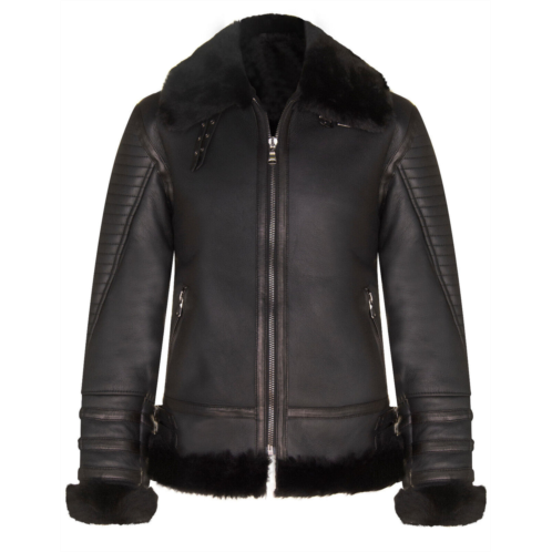 Indulge in timeless style with our Men's Sheepskin Black Leather Jacket. Crafted from genuine double-faced sheepskin, this jacket offers unmatched comfort, warmth, and durability. The double collar adds a distinctive touch and enhances the overall design. With two handwarmer pockets at the waist, you can keep your hands cozy during colder days. The jacket also features a stylish pocket on the sleeve, adding an extra element of design. For a personalized fit, the adjustable belt at the cuffs and waist allows you to customize the jacket according to your preference.A Genuine double-faced sheepskin for superior comfort and durability Double collar for a stylish and unique look Two handwarmer pockets at the waist for added convenience Sleeve pocket for extra design detail Adjustable belt at the cuffs and waist for a personalized fit.