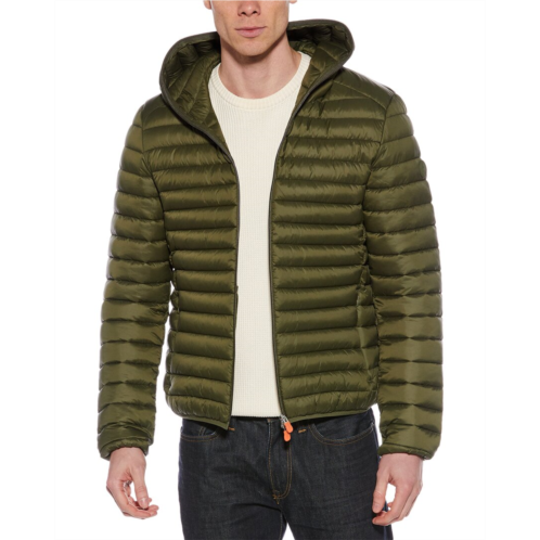 Introducing the Save The Duck Donald Jacket, a must-have addition to any men's outerwear collection. This lightweight jacket features a stylish dusty olive color with a quilted construction, hooded back, and two front zippered pockets for added convenience. The patch logo at the sleeve and elastic cuffs add a touch of modern flair to this classic design. The jacket is made from 100% nylon shell and lining, with a 100% polyester lining for added warmth and comfort. Easy to care for with machine washable fabric, this imported jacket is approximately 26 inches from shoulder to hem and is available in various sizes to ensure the perfect fit for all. Don't miss out on this stylish and practical jacket from Save The Duck!