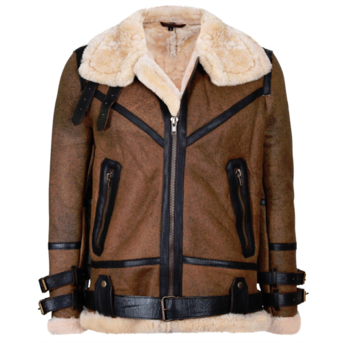 [US] Infinity Leather mens brown vintage pilot b3 sheepskin jacket- knoxville
