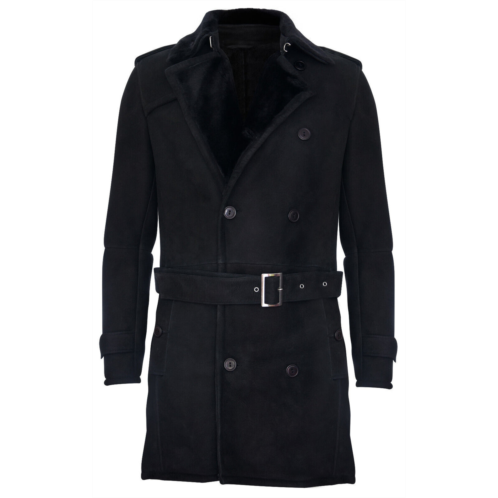 A popular item amongst the British Navy, the pea coat is reimagined here in our highest quality double faced sheepskin to create a winter go to. Thick sheepskin lining excels in providing warmth and comfort and is exposed at the wide notch collar for an elegant and classy look. For added style we've introduced a buckled waist belt which imbues extra character onto this piece whilst being adjustable to provide a tapered look and added comfort. In traditional pea coat fashion this garment is double breasted and features a four-button closing which can be left open to expose more of the sheepskin lining for a bolder look. Crafted from high-quality double-faced sheepskin with suede exterior Thick sheepskin lining is renowned for providing warmth and comfort This coat is extended in length and features a fully closable collar for extra warmth Furnished with both a YKK zip fastening and a four-button closure.