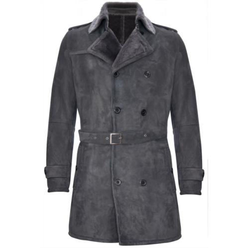[US] Infinity Leather mens shearling sheepskin suede pea coat-cali