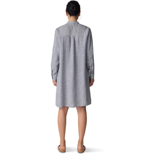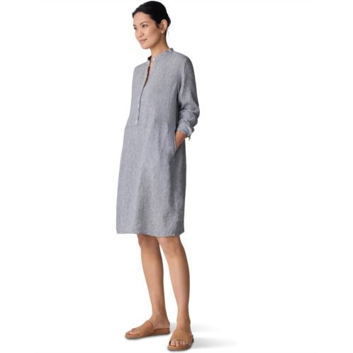 - A yarn-dyed stripe with the look of seersucker and the lightness and breathability of organic linen, the Eileen Fisher Knee Length Dress revamps your casual fashion game. The pull-on style dress features a henley neck with a half-button placket, long sleeves with buttoned cuffs, and a knee-length silhouette.