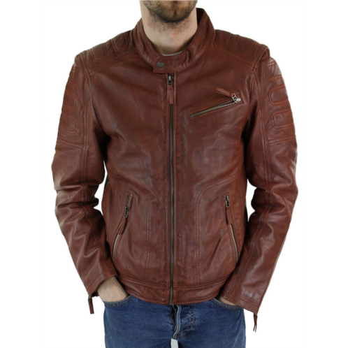 * Mens Genuine Leather Zip Jacket Tan Brown* Premium Vintage Soft Napa Leather, Chest Pockets, Side Pockets & Internal Pockets For Secure Storage* Smart Casual Wear,Real Leather, Light Weight Ideal For All Seasons* Amazing Washed Brown Colour, Tailored Fit (inbetween slim & regular fit)Material - Outer - 100% Leather; Lining - 100% Polyester